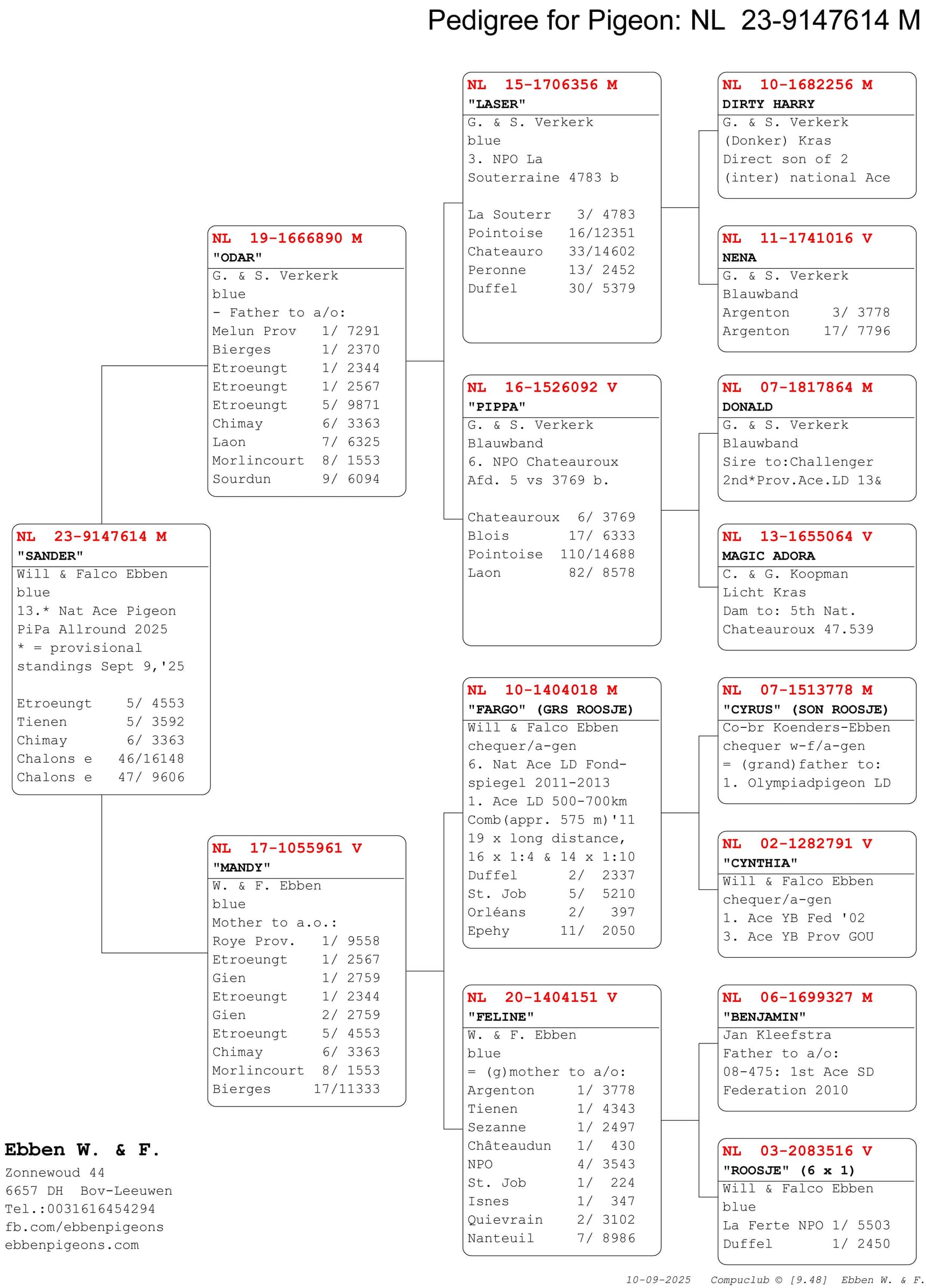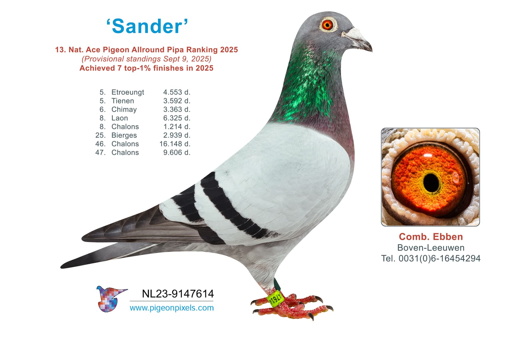 - NL23-9147614 “Sander” (8e tegen 6.325 duiven)