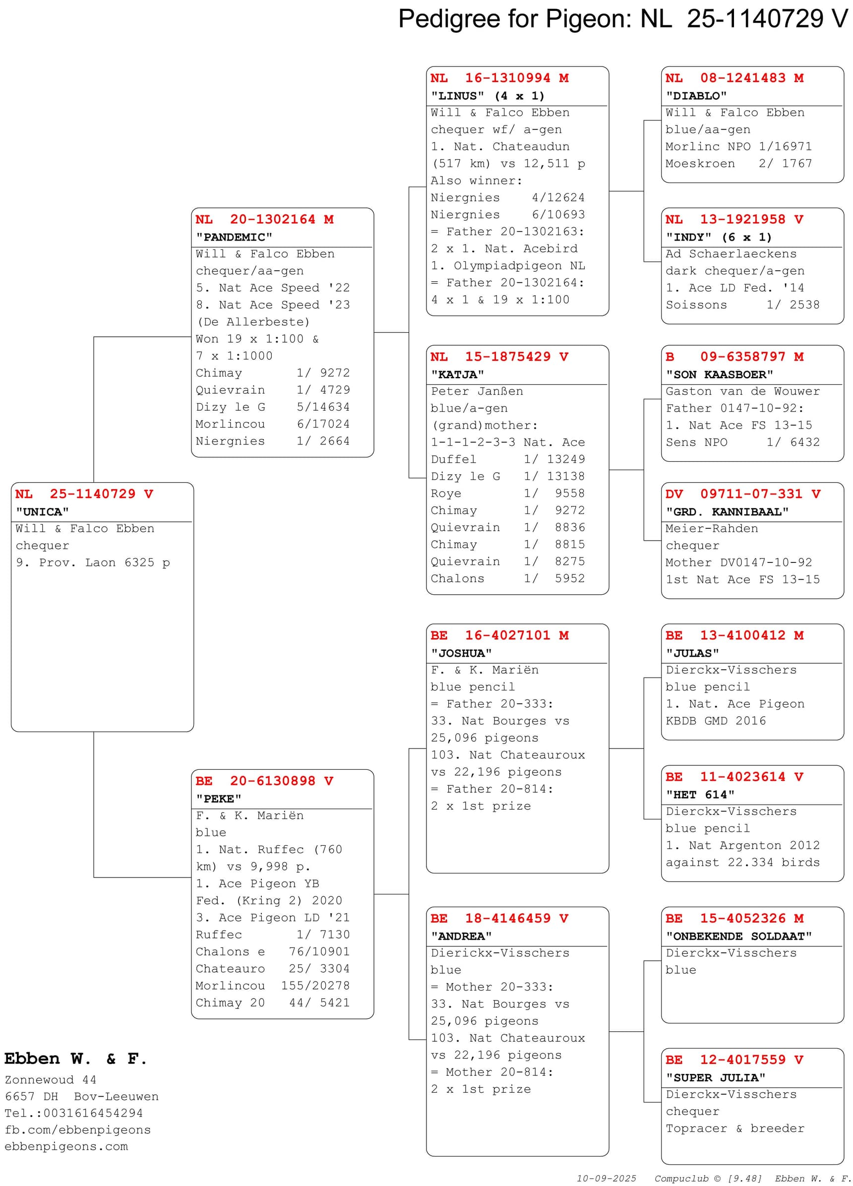 - NL25-1140729 “Unica” (9e tegen 6.325 duiven)