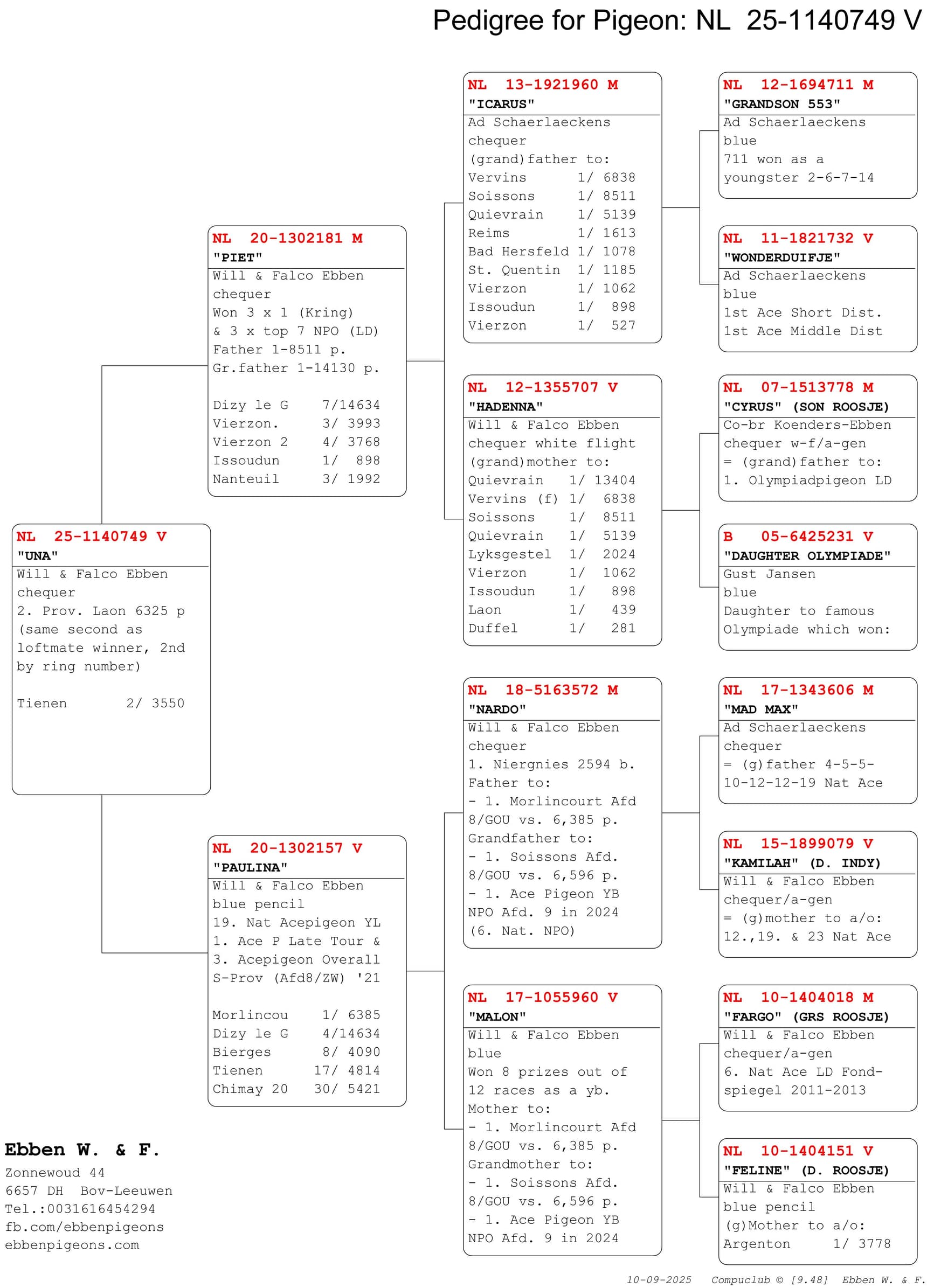 - NL25-1140749 “Una” (2e tegen 6.325 duiven)
