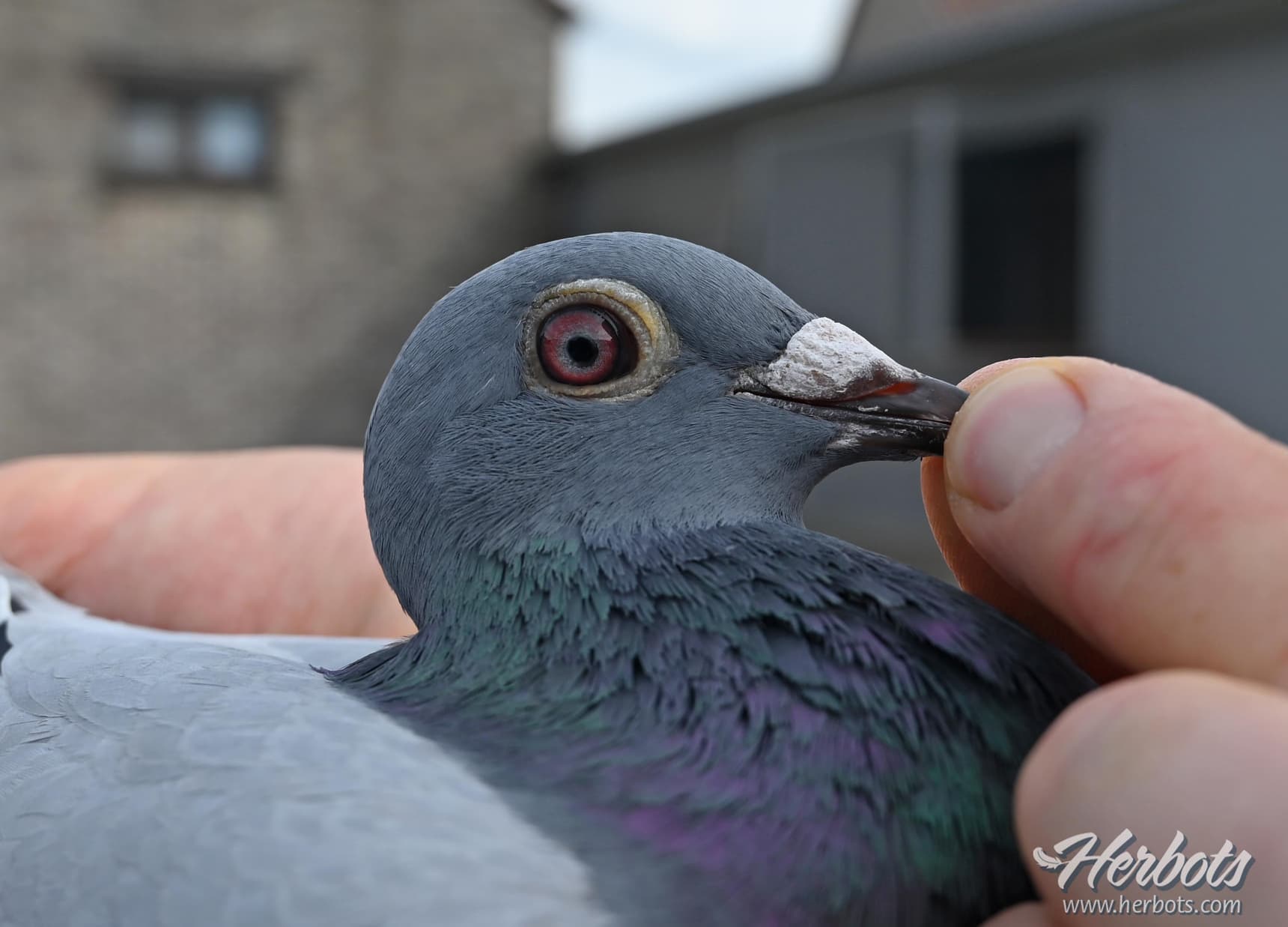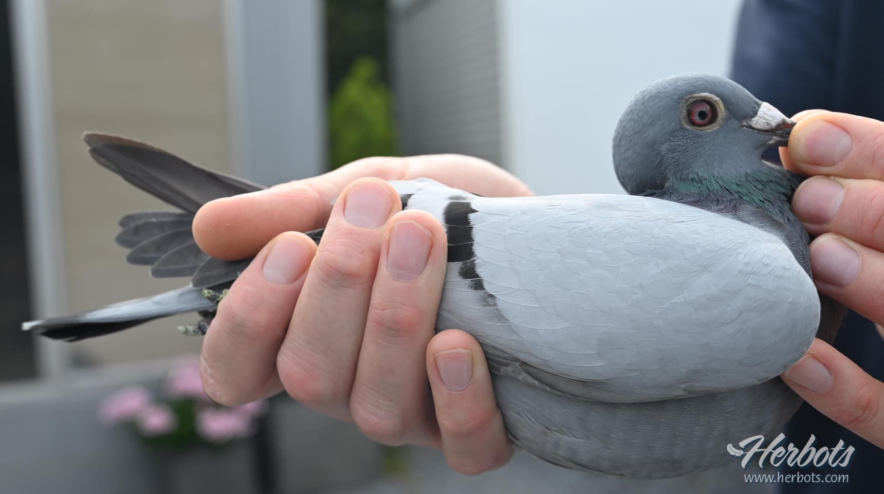 “My Dream” is eveneens een droomduivin in de hand. Middelmatig gebouwd maar een zeer sterke karkas en een blik die meer dan karakter uitstraalt. Met een gemiddelde snelheid van 1.485 m/m werd ze niet enkel primus in haar categorie tegen 21.502 jonge duiven, maar was ze tevens de snelste van alle 34.429 Bourges vliegers.